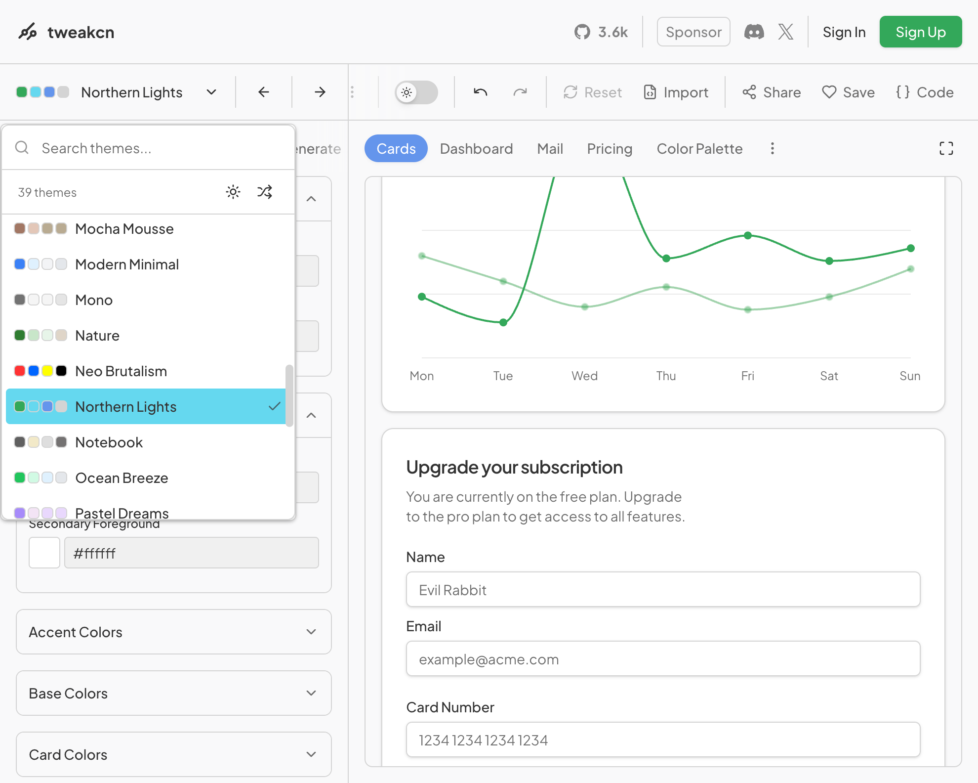 1. Visit tweakcn.com to select a preset or customize your theme visually